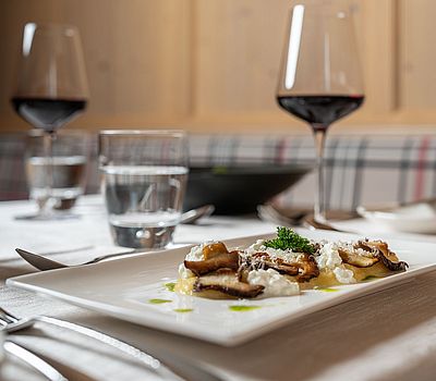 Einmal wöchentlich dürfen Sie sich auf ein Wildgericht aus eigener Jagd im Hotel Hubertus freuen. Frisch, regional und natürlich in bester Qualität. Doch es wird nicht nur gejagt, sondern auch gesammelt. Gastgeberin Monica ist eine wahre „Schwammerl-Expertin“ und hat ein Auge für Steinpilze, Pfifferlinge & Co. Die Pilze sind mindestens einmal pro Woche auf der Speisekarte zu finden und verleihen jedem Gericht den Geschmack von Natur und Heimat.